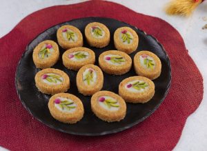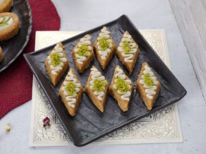 -Garnish with pistachios,dried rose petal & serve (makes 14).