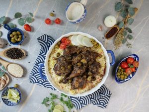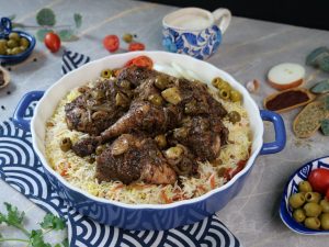-Serve za’atar chicken with prepared saffron rice!